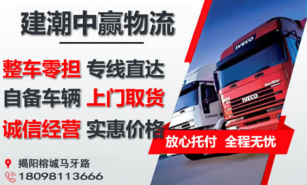 揭阳物流公司为工厂、贸易商、批发商等货主提供整车、零担、大件运输、普快特快、搬家搬厂、回程车调用等全方位的物流服务。在揭阳及周边城市都可以上门提货,送货到指定地点。价格优惠、运货及时,欢迎来电咨询揭阳到果洛物流专线,建潮中赢物流将为您全力以赴!